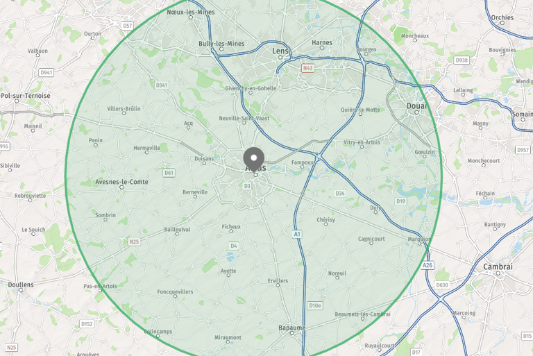 Achicourt, Beaurains, Saint-Laurent-Blangy, Dainville, Sainte-Catherine, Tilloy-lès-Mofflaines, Anzin-Saint-Aubin, Saint-Nicolas, Roclincourt, Marœuil, Écurie, Neuville-Saint-Vaast, Bailleul-Sir-Berthoult, Athies, Fampoux, Biache-Saint-Vaast, Vitry-en-Artois, Wancourt, Mercatel, Monchy-le-Preux, Gavrelle, Roeux, Vimy, Liévin, Angres, Avion, Lens, Sallaumines, Hénin-Beaumont, Courrières, Noyelles-sous-Lens, Montigny-en-Gohelle, Douai, Flers-en-Escrebieux, Lambres-lez-Douai, Brebières, Corbehem, Auby, Bapaume, Achiet-le-Grand, Ervillers, Bucquoy, Avesnes-le-Comte, Saulty, Noyellette, Villers-lès-Cagnicourt